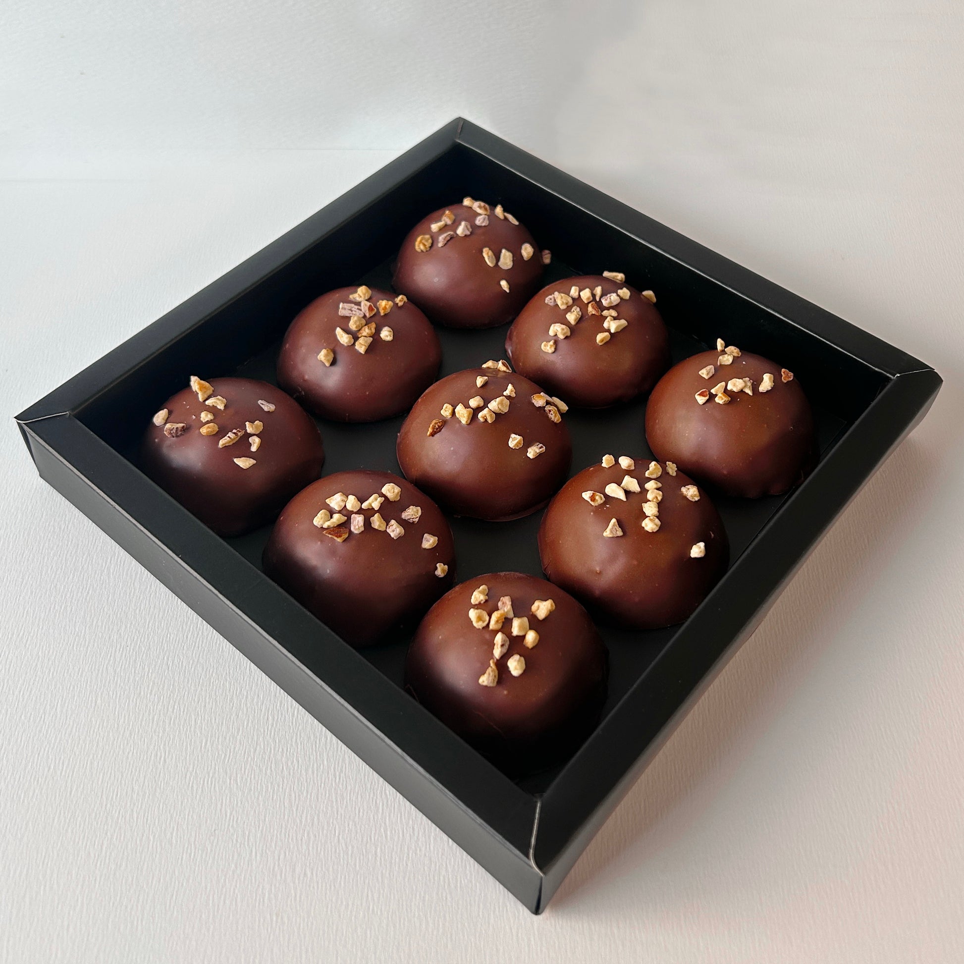 Coffret de dômes guimauve au chocolat et vanille, praliné amandes et noisettes torréfiées